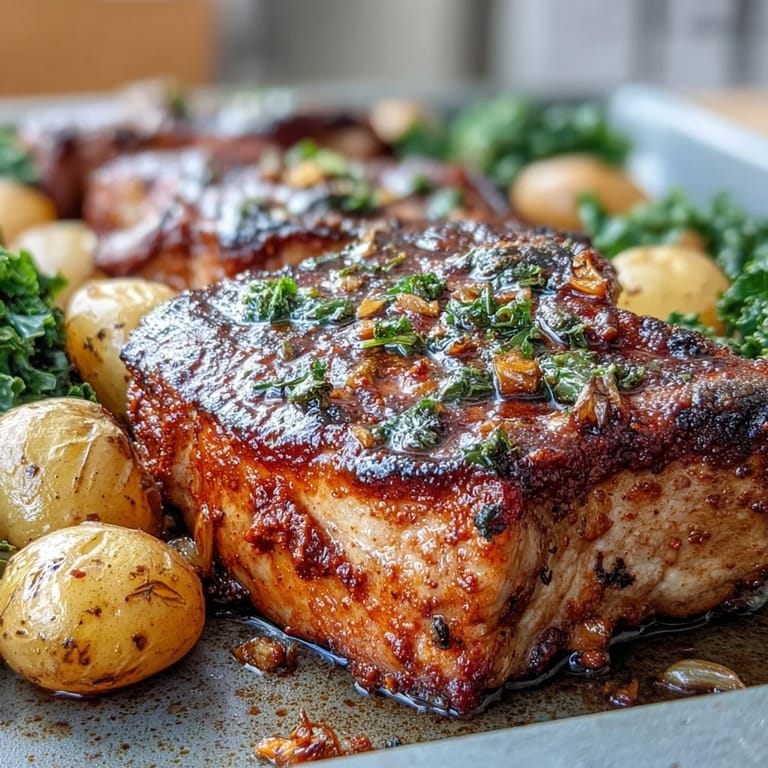 Save to Pinterest The smell hit me before I even opened the oven: smoky, garlicky, with that faint citrus edge from the lemon zest. My neighbor had given me a jar of Aleppo pepper from her last trip abroad, and I had no idea what to do with it until I spotted thick pork chops on sale. I rubbed them down with pimentón and that mysterious red flake, tossed potatoes on the same tray, and pretended I knew exactly what I was doing. When I pulled everything out thirty minutes later, golden and sizzling, I realized I'd stumbled onto something I'd make again and again.