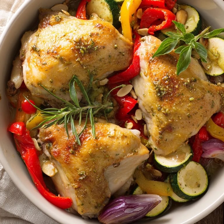 Save to Pinterest A vibrant, herbaceous weeknight dinner featuring tender chicken and roasted vegetables, all bathed in a zesty basil-lemon marinade. Perfect for a simple, one-pan meal with minimal cleanup.