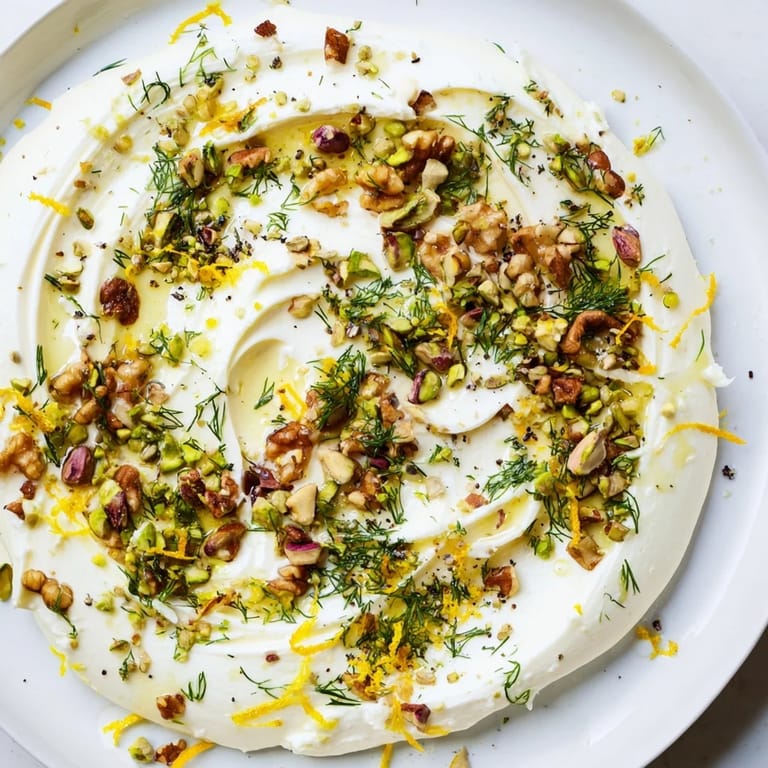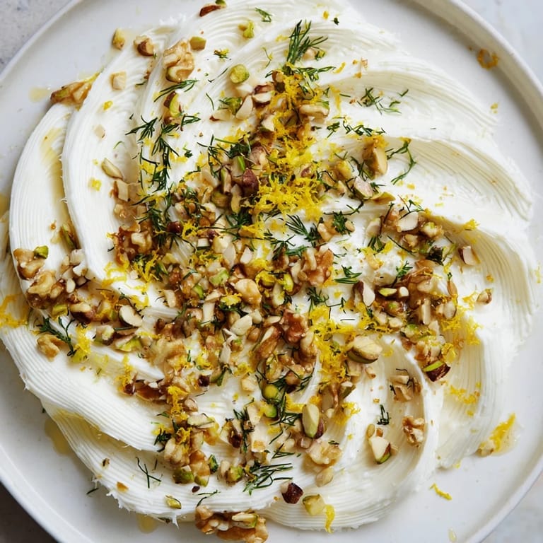 - Scatter the cooled nuts, chopped herbs, flaky sea salt, and lemon zest across the butter, then crack some black pepper over everything. If you're using honey, drizzle it in thin lines or dots—it glistens and looks intentional.