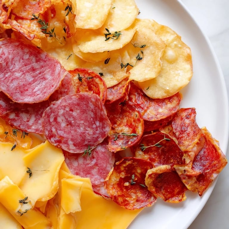 Save to Pinterest I discovered charcuterie chips by accident at a dinner party when I got tired of traditional cheese boards taking up half my kitchen counter. While arranging some thinly sliced salami and aged cheddar on a baking sheet, it hit me—what if I just crisped these up in the oven? Ten minutes later, I pulled out something that tasted like the best parts of a charcuterie board but with a shatteringly crisp texture that made everyone stop mid-conversation. Now I make them whenever I need to impress without fussing.