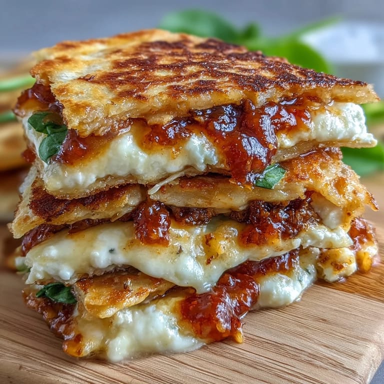 Save to Pinterest There's something about the moment when chili jam hits a hot skillet that makes you stop whatever you're doing. A friend brought a jar of it over one evening, and I was skeptical at first—sweet and spicy together felt like it might clash. But then I thought about pairing it with tangy goat cheese, and suddenly I had this quesadilla that tasted like nothing I'd made before. Golden, crispy, with that unexpected heat and tang pulling everything together. It became the thing I make when I want to feel like I'm actually cooking, even though it takes barely twenty minutes.