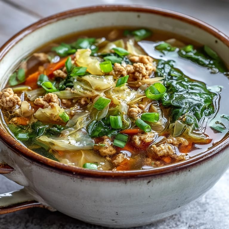 Save to Pinterest The first time I made this soup was on a Tuesday night when I had a serious egg roll craving but absolutely zero energy for wrapping and frying anything. My kitchen was already a disaster zone from the weekend's baking experiments, so standing at the stove for hours wasn't happening.