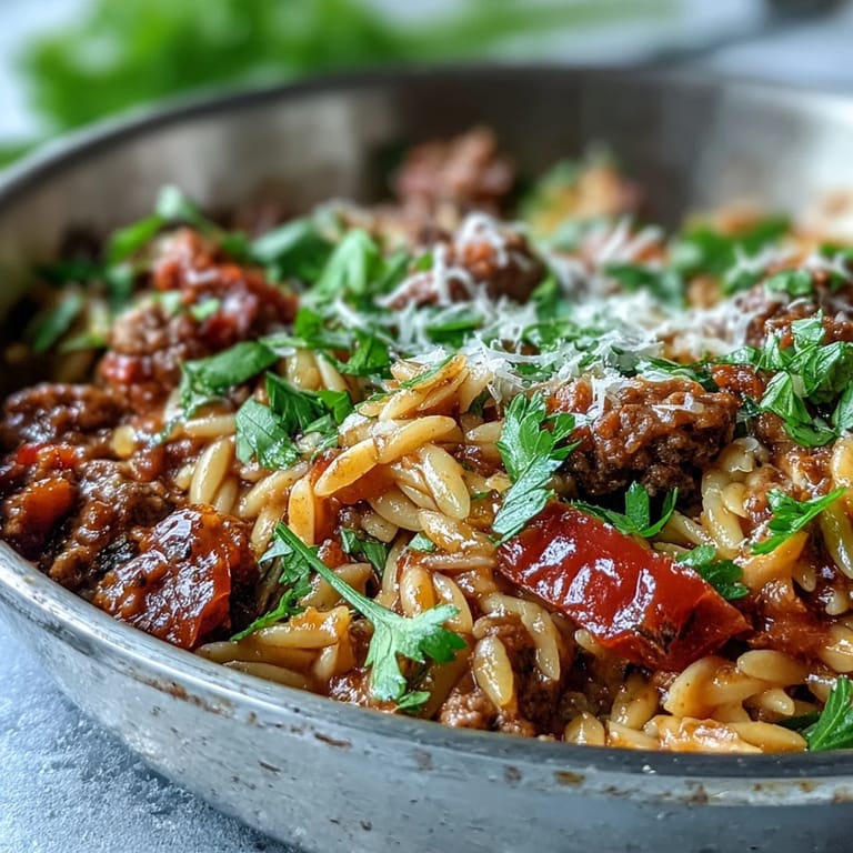 Save to Pinterest One evening, I stood at the stove stirring a skillet while my sister sat at the counter complaining about her long day. I wasn't planning anything elaborate, just tossing what I had into one pan. The smell of browning beef and sweet peppers filled the kitchen, and by the time I folded in the orzo, she'd stopped talking and started watching. We ended up eating straight from the skillet, bowls abandoned, laughing at how something so simple could feel this good.