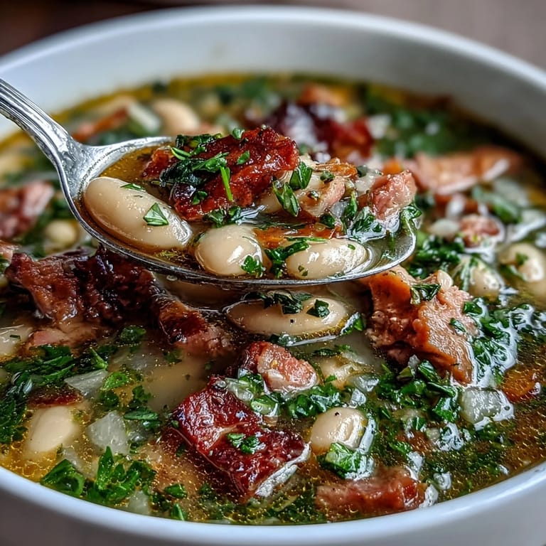 Save to Pinterest There's something deeply satisfying about a bowl of hearty ham and cannellini bean soup that fills your kitchen with the aroma of fresh herbs and savory broth. This comforting American classic brings together tender chunks of cooked ham, creamy cannellini beans, and a vibrant medley of parsley, thyme, and rosemary to create a dish that warms you from the inside out. Perfect for chilly evenings or when you need a nourishing meal that's both simple and satisfying, this soup delivers rich flavor in just an hour from start to finish.