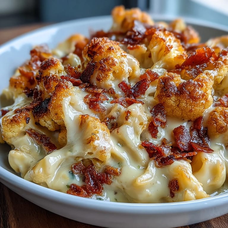 The magic happens when you commit to roasting instead of steaming or boiling. Roasting caramelizes the edges of each floret, adding sweetness and depth that plays beautifully against the salty, umami-rich cheese sauce. You end up with something that has real structure and presence on the plate instead of soft, waterlogged pieces that disappear into sauce. The texture contrast between crispy bacon, tender cauliflower, and creamy sauce is what makes people keep coming back for more.