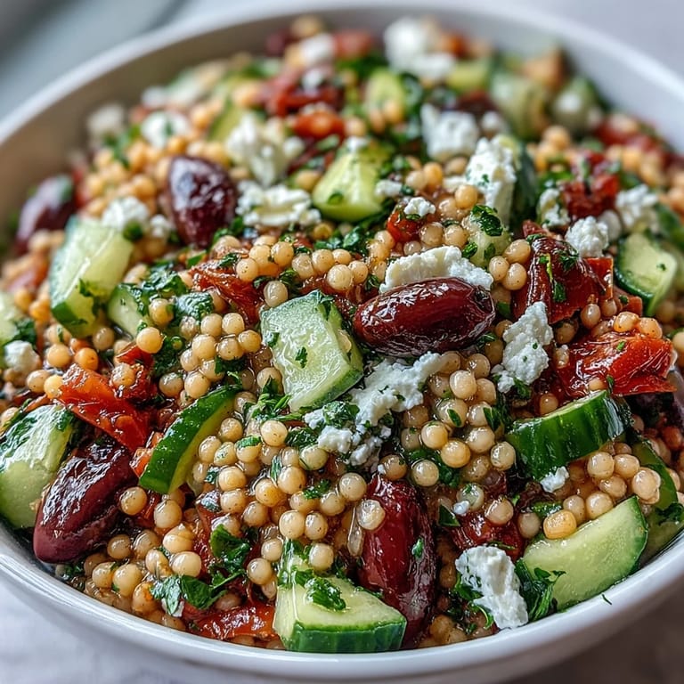 Save to Pinterest The first bowl I ever made sat untouched on my counter for twenty minutes because I couldn't stop staring at the colors. I'd been cooking beige dinners all week, drowning in deadlines and forgetting what actual food looked like. Then I tossed warm pearl couscous with cool cucumbers and cherry tomatoes, and suddenly my kitchen smelled like a Greek island I'd never visited. It wasn't fancy, but it felt like I'd pressed pause on everything gray and invited something bright to the table.