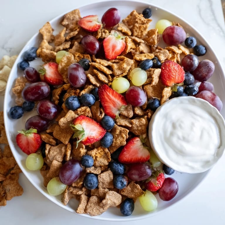 Save to Pinterest A fun, colorful, and crunchy kid-friendly snack pile featuring rainbow Goldfish crackers, fresh fruit, and creamy yogurt dipβperfect for playdates or after-school treats.