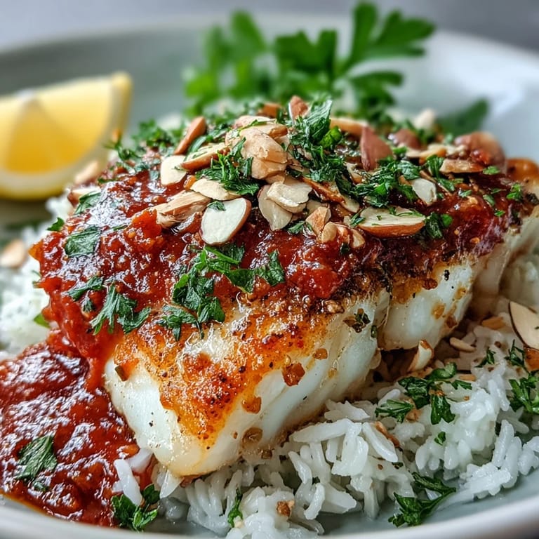 Save to Pinterest The first time I pulled this dish from the oven, the kitchen smelled like a coastal bistro—garlicky tomatoes mingling with toasted spices. I wasn't expecting much from a weeknight dinner, but when I spooned that warm sauce over the flaky cod and heard the crunch of spiced almonds, I knew I'd stumbled onto something special. My partner wandered in, drawn by the aroma, and we ended up eating at the counter instead of waiting for the table. It's become our go-to when we want something that feels indulgent but leaves us energized, not weighed down.