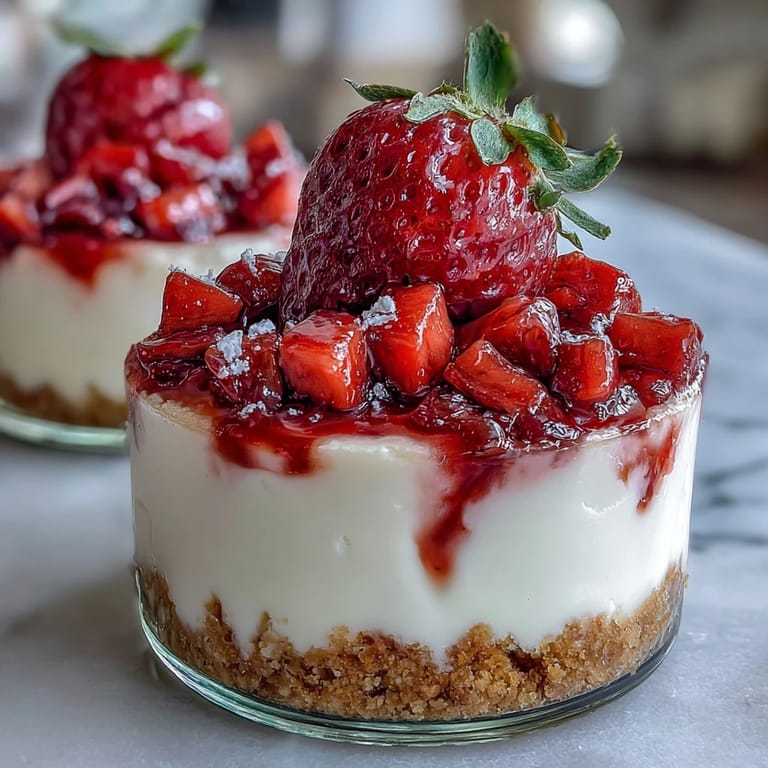 - Spoon the strawberry mixture over the cheesecake layer in each cup.