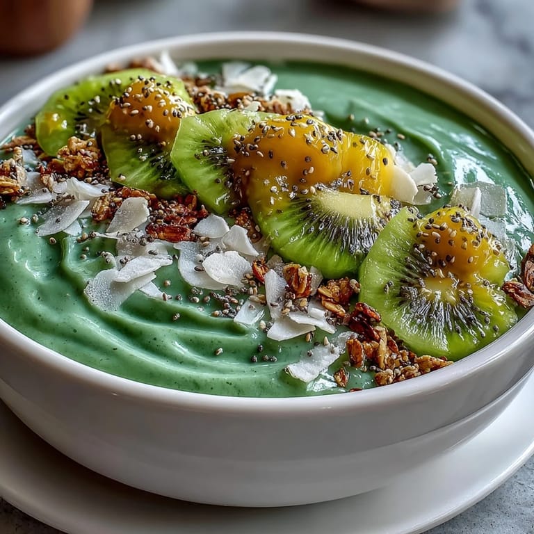 Save to Pinterest There's something magical about the moment a blender whirs to life on a quiet morning, turning a handful of greens into something so vibrant and tropical that you'd swear you're sitting beachside instead of in your kitchen. My roommate once caught me mid-blend, curious about the green mixture that smelled like a vacation, and by the time I poured those two bowls, she was already hunting for a spoon. That's when this smoothie bowl stopped being just breakfast and became our weekend ritual—the kind of thing you make when you want to feel a little bit alive before noon.